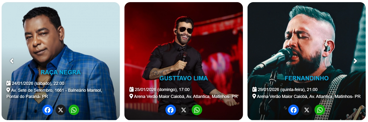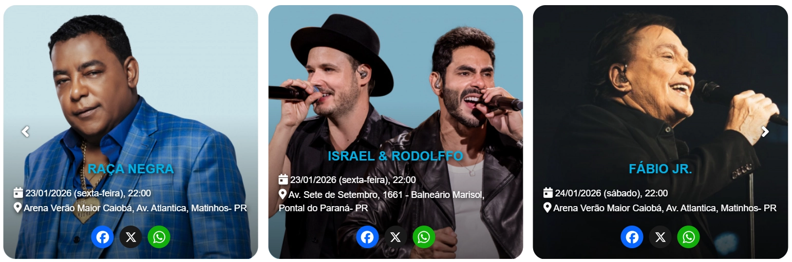 CALENDÁRIO SHOWS E EVENTOS DO VERÃO MAIOR PARANÁ 2026